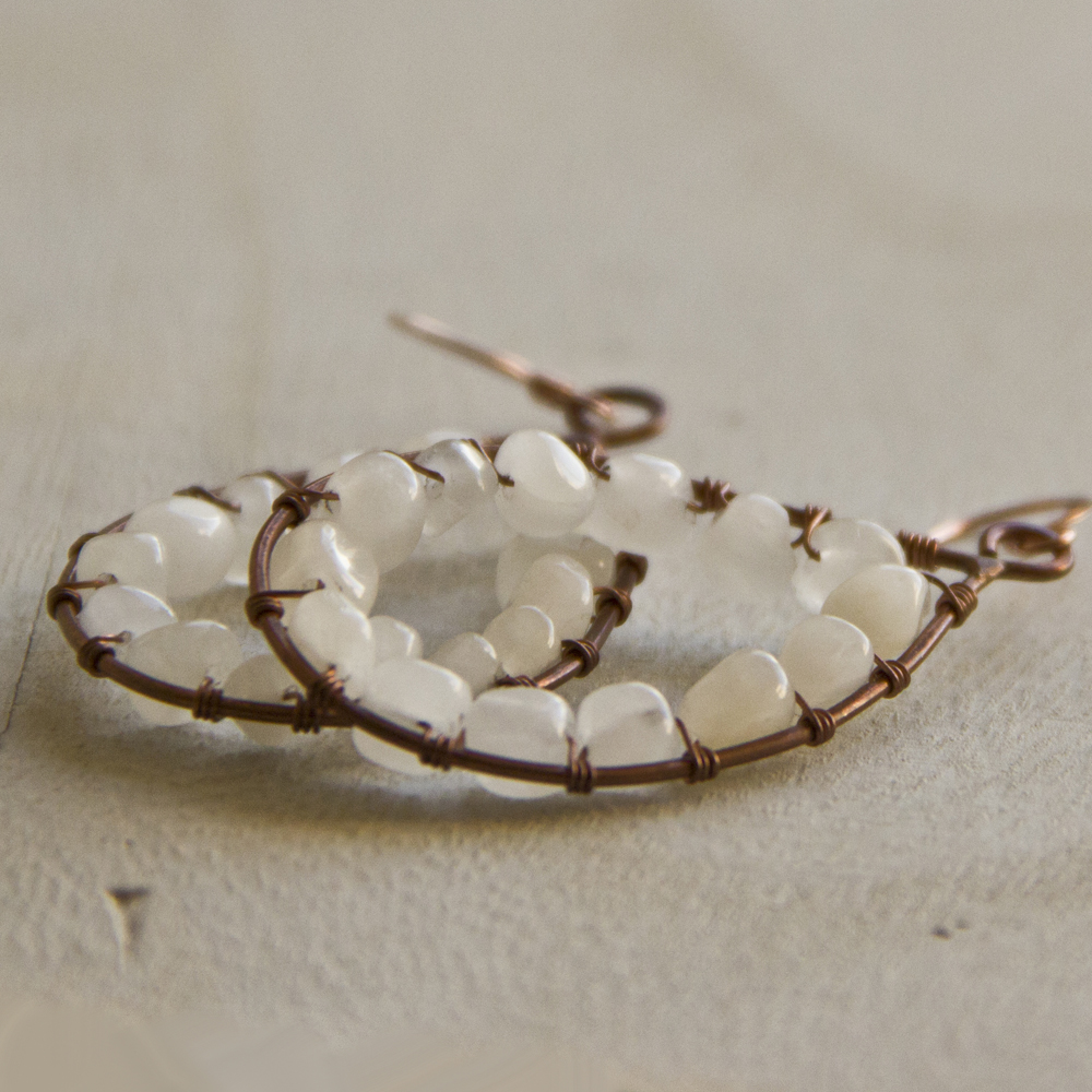 These beautiful earrings feature a row of gemstone nugget beads, wire wrapped around the inside, producing an effect similar to that of a geode.